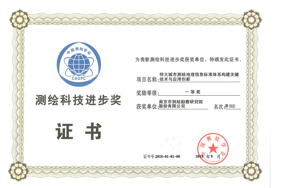 全國測繪科技進(jìn)步一等獎——特大城市測繪地理信息標(biāo)準(zhǔn)體系構(gòu)建關(guān)鍵技術(shù)與應(yīng)用創(chuàng)新