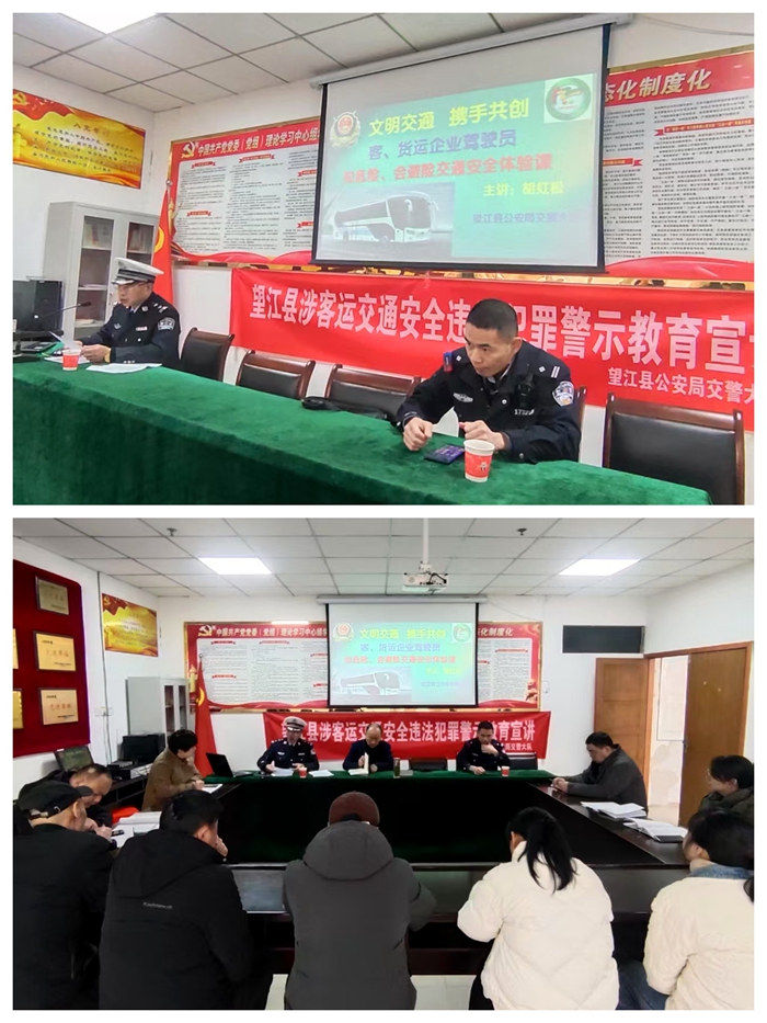 為深入貫徹落實(shí)道路交通安全專項(xiàng)整治行動(dòng)部署要求,切實(shí)強(qiáng)化客運(yùn)企業(yè)源頭安全管理,3月13日上午,望江縣交警宣教部門聯(lián)合望江客運(yùn)分公司開展涉客運(yùn)交通安全違法犯罪警示教育宣講活動(dòng),分公司安全管理人員積極參與。
