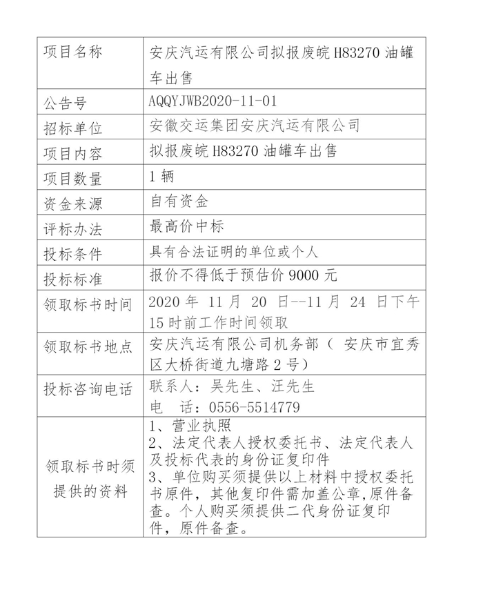 安慶汽運(yùn)公司擬報廢皖H83270油罐車售公告