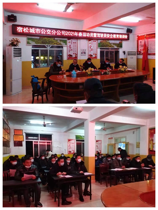 2021年1月27日晚,宿松城市公交分公司召開了2021年春運(yùn)動(dòng)員暨駕駛員安全教育培訓(xùn)會(huì),縣交通運(yùn)管局、交警隊(duì)相關(guān)領(lǐng)導(dǎo)應(yīng)邀蒞會(huì)指導(dǎo),分公司各部門負(fù)責(zé)人及全體駕駛員參加了會(huì)議,會(huì)議由分公司經(jīng)理劉天旺主持。
