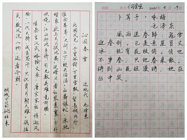 童安校車開展“翰香獻禮,感念黨恩”紅色詩詞書寫活動。通過書寫《卜算子·詠梅》《沁園春·雪》《七律·長征》等經(jīng)典紅色詩詞,傳承紅色基因,發(fā)揚紅色精神。