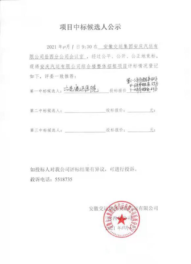 岳西分公司綜合樓整體招租中標(biāo)結(jié)果公示