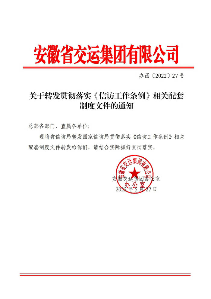 關(guān)于轉(zhuǎn)發(fā)貫徹落實(shí)《信訪工作條例》相關(guān)配套制度文件的通知