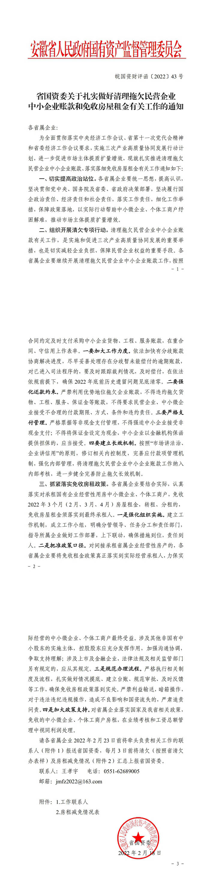 省國(guó)資委關(guān)于扎實(shí)做好清理拖欠民營(yíng)企業(yè)中小企業(yè)賬款和免收房屋租金有關(guān)工作的通知