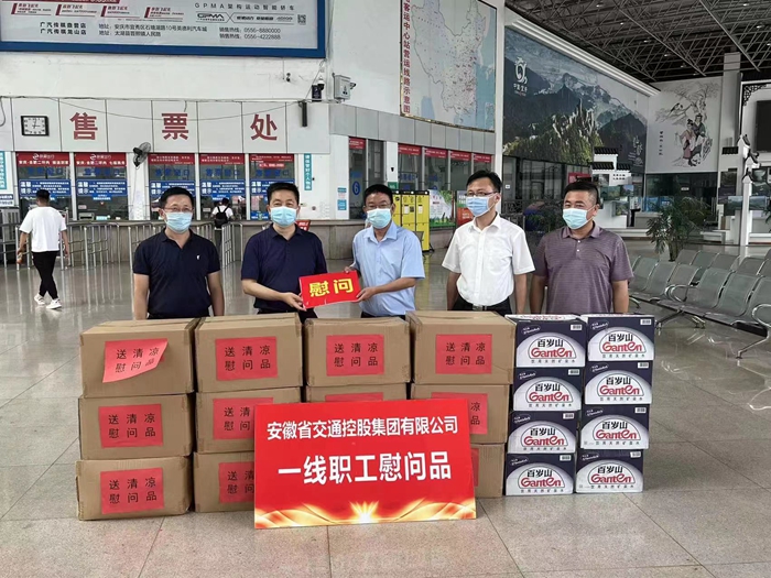 炎炎夏日,酷暑難當(dāng)。7月20日下午,省交控集團(tuán)黨委委員、紀(jì)委書記、監(jiān)察專員魏發(fā)斌,紀(jì)委副書記、監(jiān)察室主任程光遠(yuǎn)在省交運(yùn)集團(tuán)領(lǐng)導(dǎo)楊紅兵、許占礦,安慶汽運(yùn)公司領(lǐng)導(dǎo)王中明、蔡烈焰的陪同下來到安慶公路客運(yùn)中心站,看望慰問奮戰(zhàn)在高溫酷暑中的一線工作人員,并為他們送去飲料、礦泉水等防暑降溫慰問品。